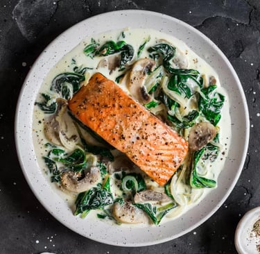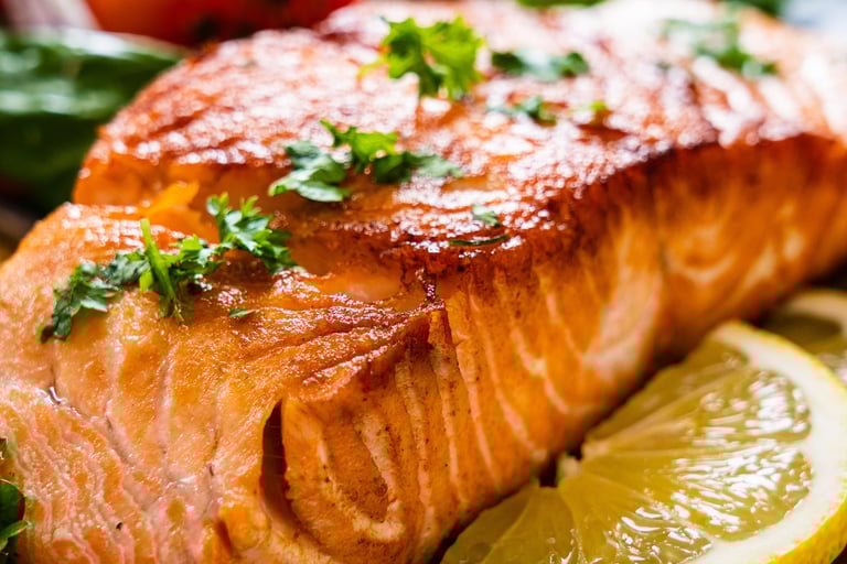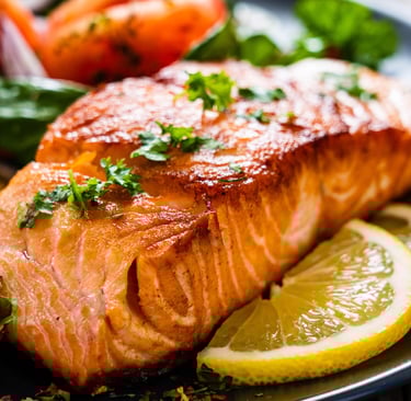 Saumon frais grillé à la plancha, accompagné de petits légumes de saison . Un plat sain, léger et plein de saveurs.